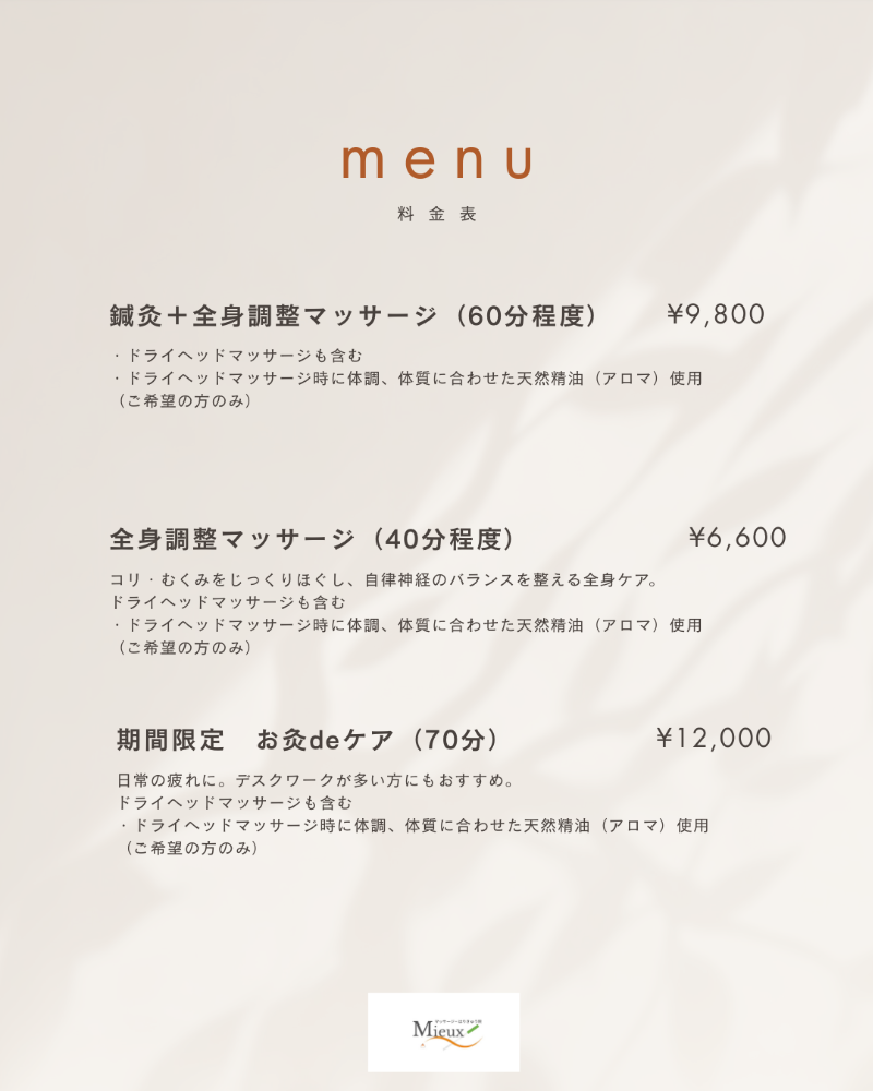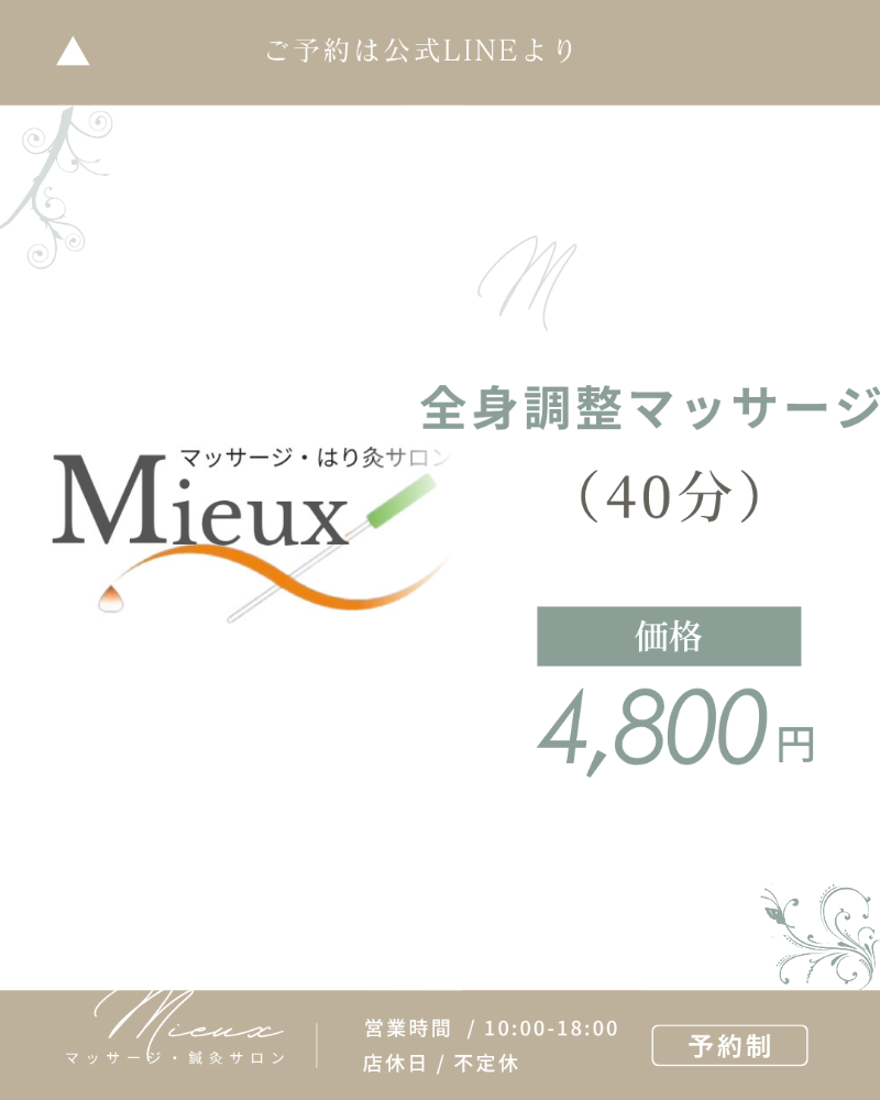 仙台|【プライベートサロン】Mieux マッサージ・はり灸サロン