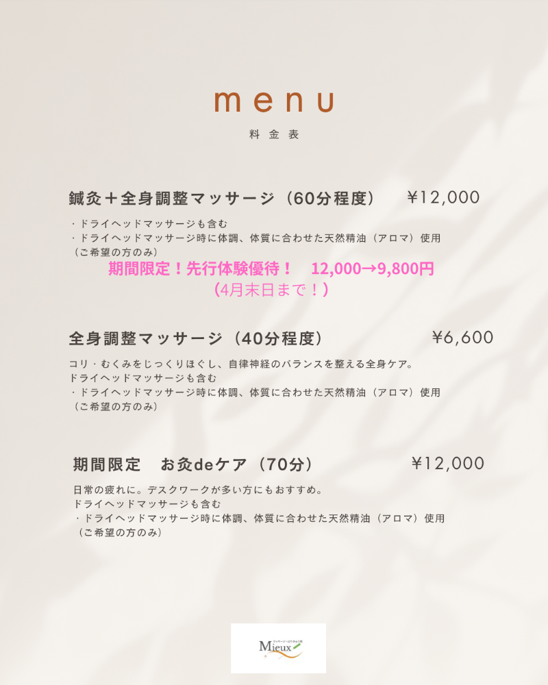 仙台|【プライベートサロン】Mieux マッサージ・はり灸サロン