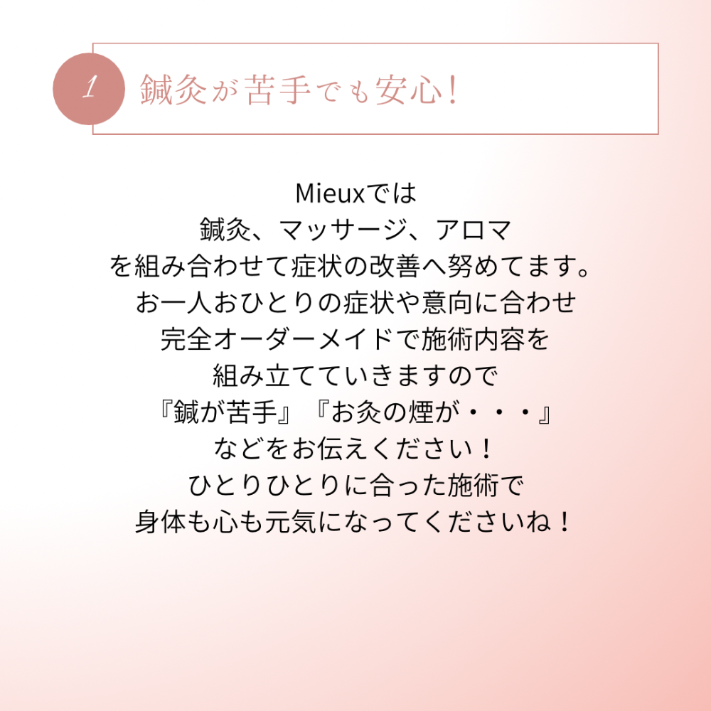 仙台|【プライベートサロン】Mieux マッサージ・はり灸サロン
